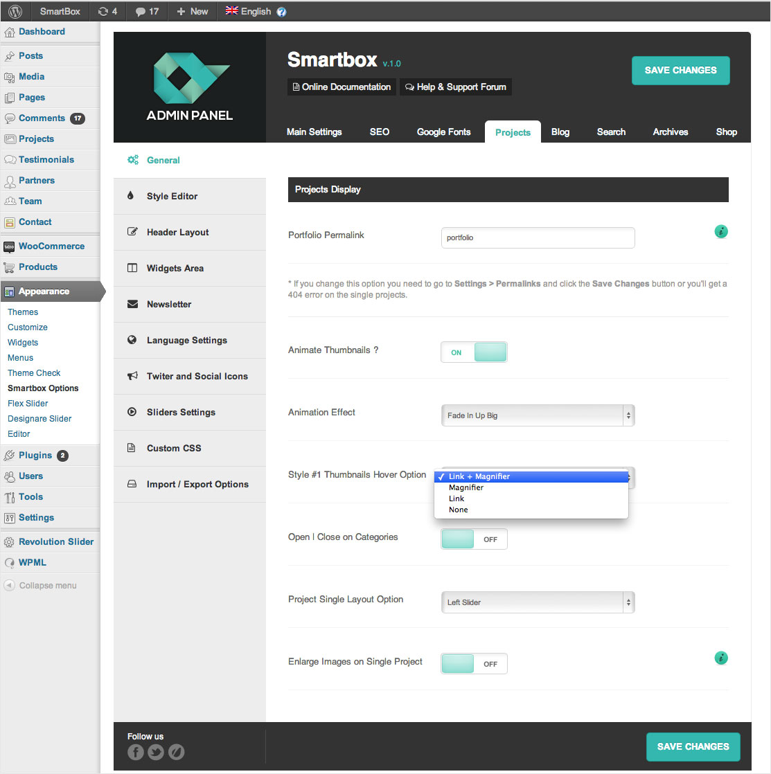 Smartbox allow you to create different template styles in the Admin Panel Options with the newest Style Editor. Define your style, save it on templates and use them as global style for your website or, if you want, use a specific template on a specific page. Real Unlimited Colors!